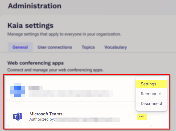 Set your Kaia Microsoft Teams Settings in Outreach